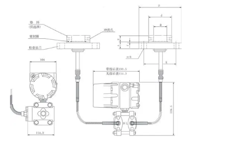 雙法蘭變送器實(shí)質(zhì)上是一種特殊取壓的差壓變送器。它是在差壓變送器正,負(fù)室取壓口上接上二條紫銅毛細(xì)管,末端是兩個(gè)用不銹鋼膜片封閉的、固定在安裝法蘭上的膜盒上。
