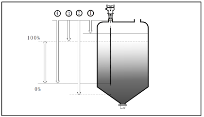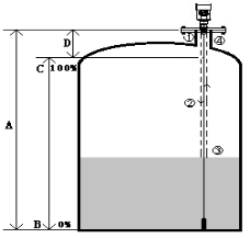 注:使用導(dǎo)波雷達(dá)物位計(jì)時(shí),務(wù)必保證料位不會(huì)進(jìn)入盲區(qū)范圍。