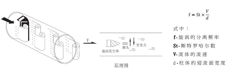 當流體以流速流經設置在流場中的旋渦發生體時,在柱體的下游產生一對交替出現的而且排列整齊的渦列 (渦街),先在柱體的一側產生,繼而在柱體的另一側產生。這一產生旋渦的理論首先由卡門(Kaxman) 提出,命名 為卡門渦街,并給出了頻率與流速的關系式,其中系數被命名為斯特羅哈爾數(圖 1)。