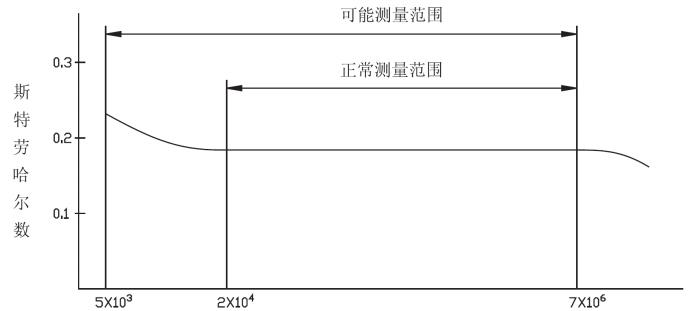 對于設計正確的漩渦發生體,Strouhal 數在很廣的雷諾數 Re 范圍內保持恒定